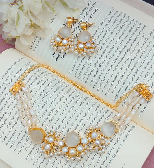 Crystal necklace and earrings Grey