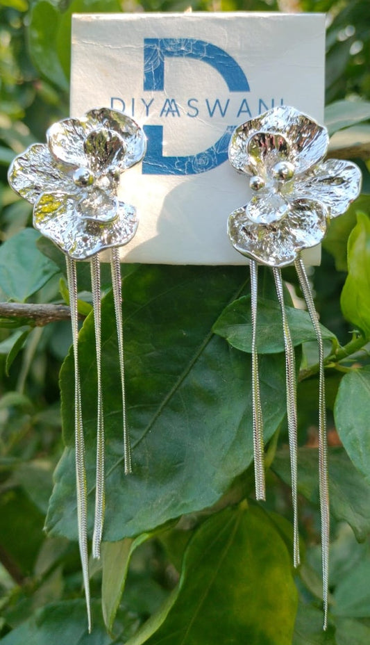 Silver Floral Drop Earrings