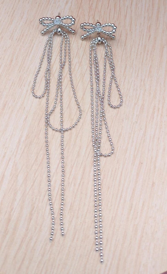 Tassel Drop Earrings with Bow Accents