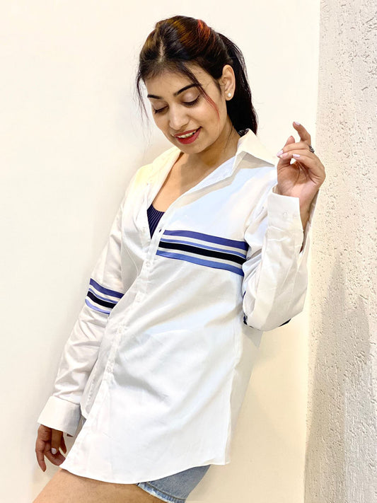 BLUE HORIZONTAL STRIPE & WHITE SHIRT