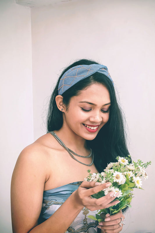 Denim Metallic Hairband Cum Bandana