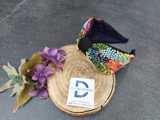 Multi Colors Stones In Black Hairband