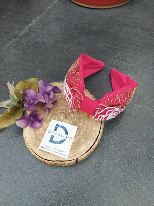Rosette In Fuchsia Hairband Cum Bandana
