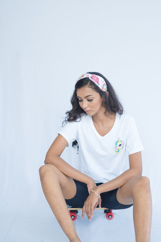 For those who love to make a statement, Diya Aswani’s printed T-shirts for women are the perfect choice. Our collection features a variety of unique and eye-catching prints, from bold graphics and slogans to intricate patterns and designs. These T-shirts are perfect for adding a touch of personality to your outfit, whether you’re heading to a casual gathering or a fun day out.
