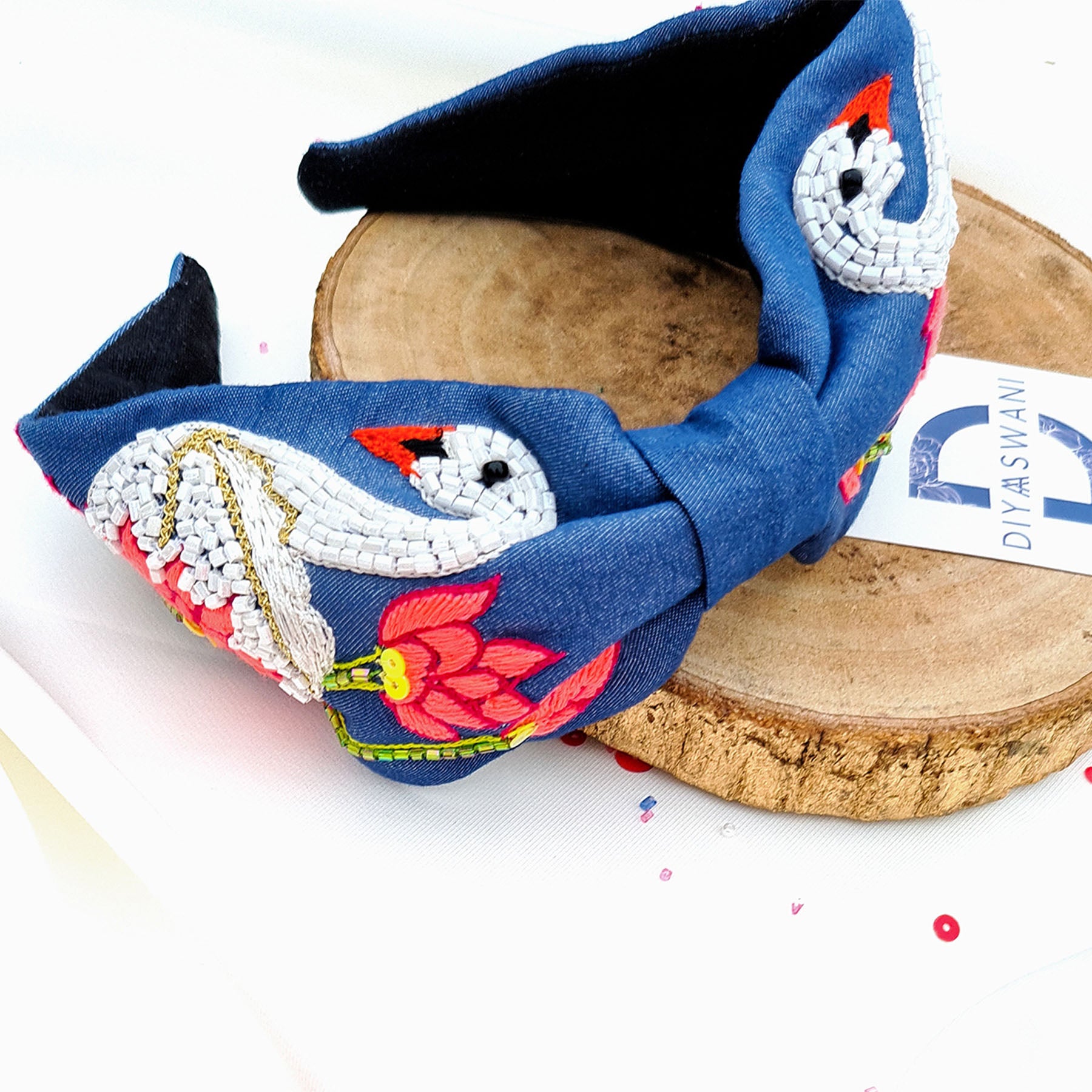 Denim Swan Hairband