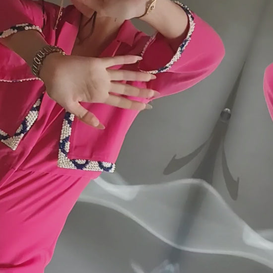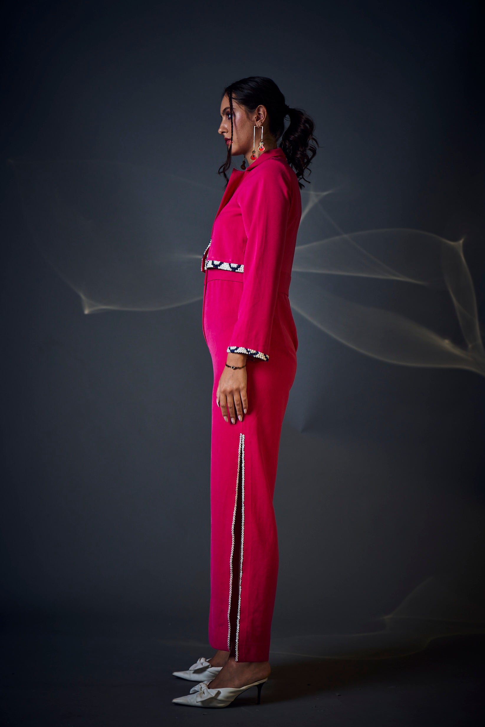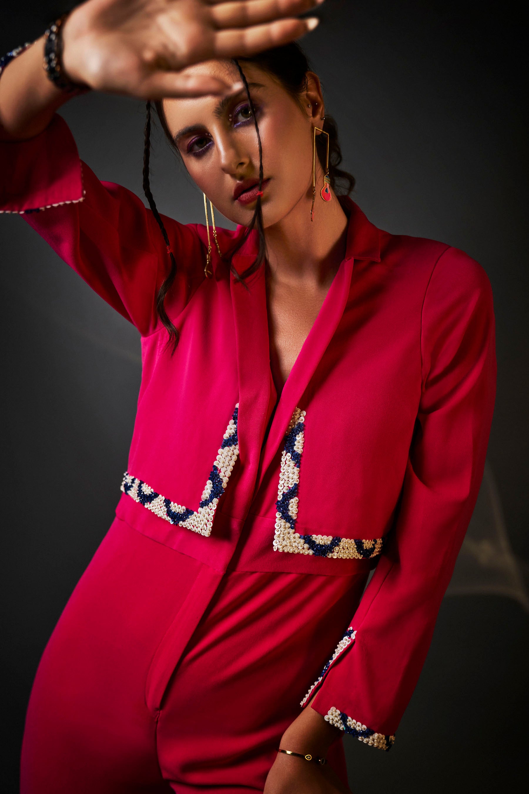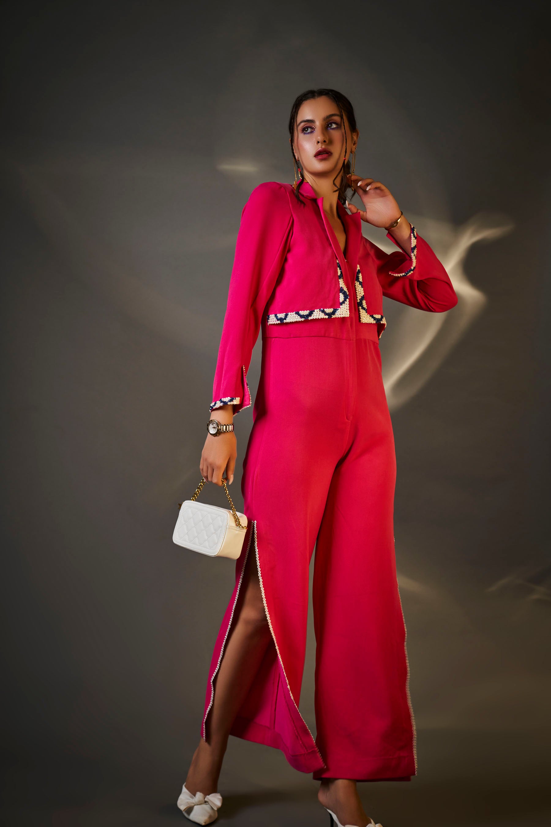 This jumpsuit with high slit on sides strikes a perfect balance between structure and fluidity making. Classy yet formal is just perfect for any gathering.