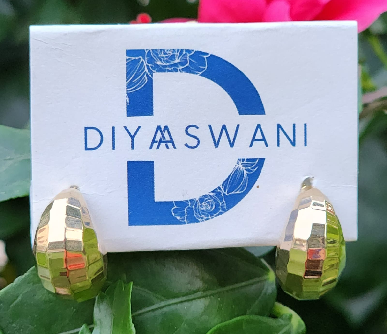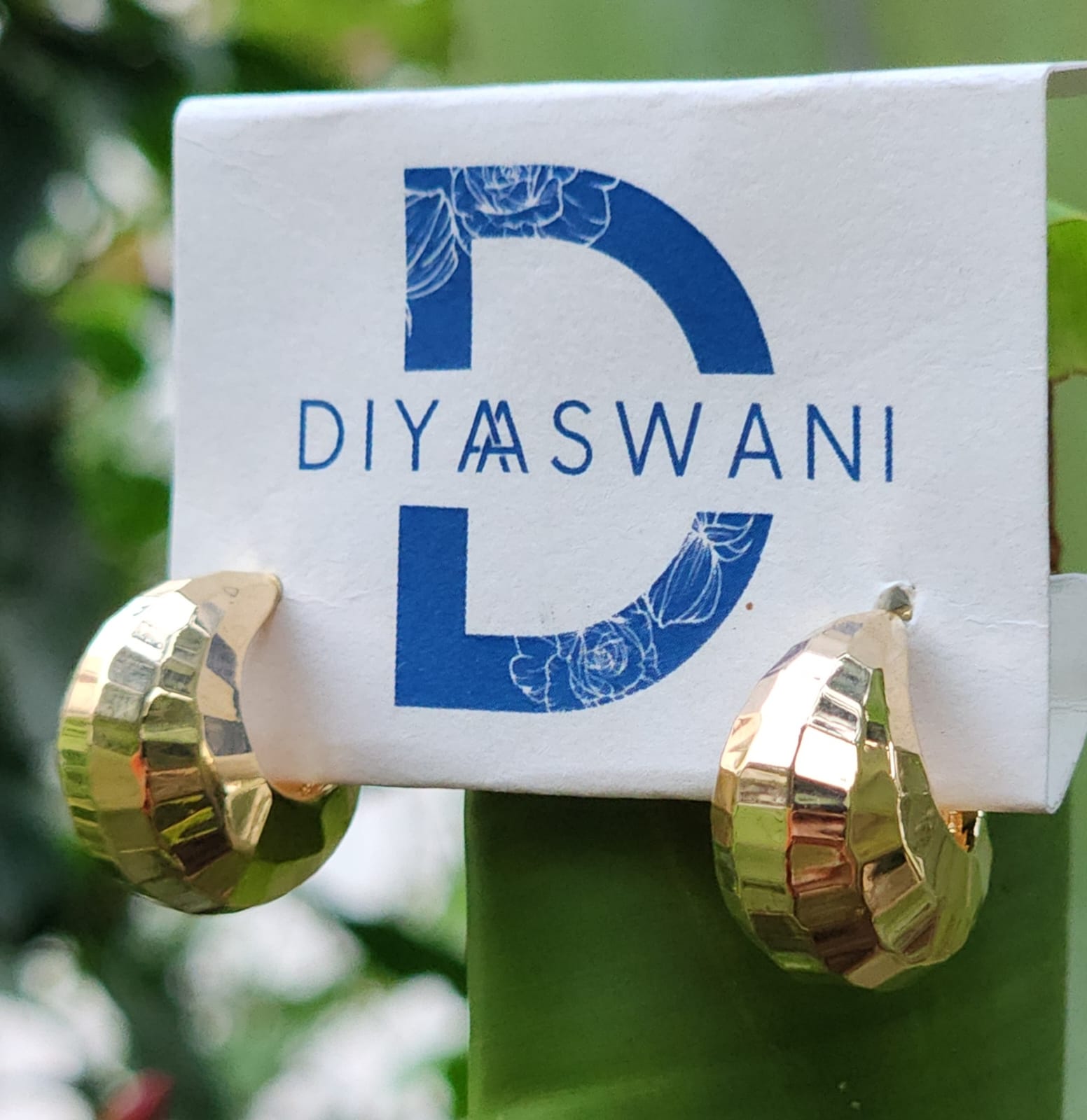 These golden huggie earrings feature a faceted design that adds a touch of sparkle and dimension. Perfect for everyday wear or a special occasion.