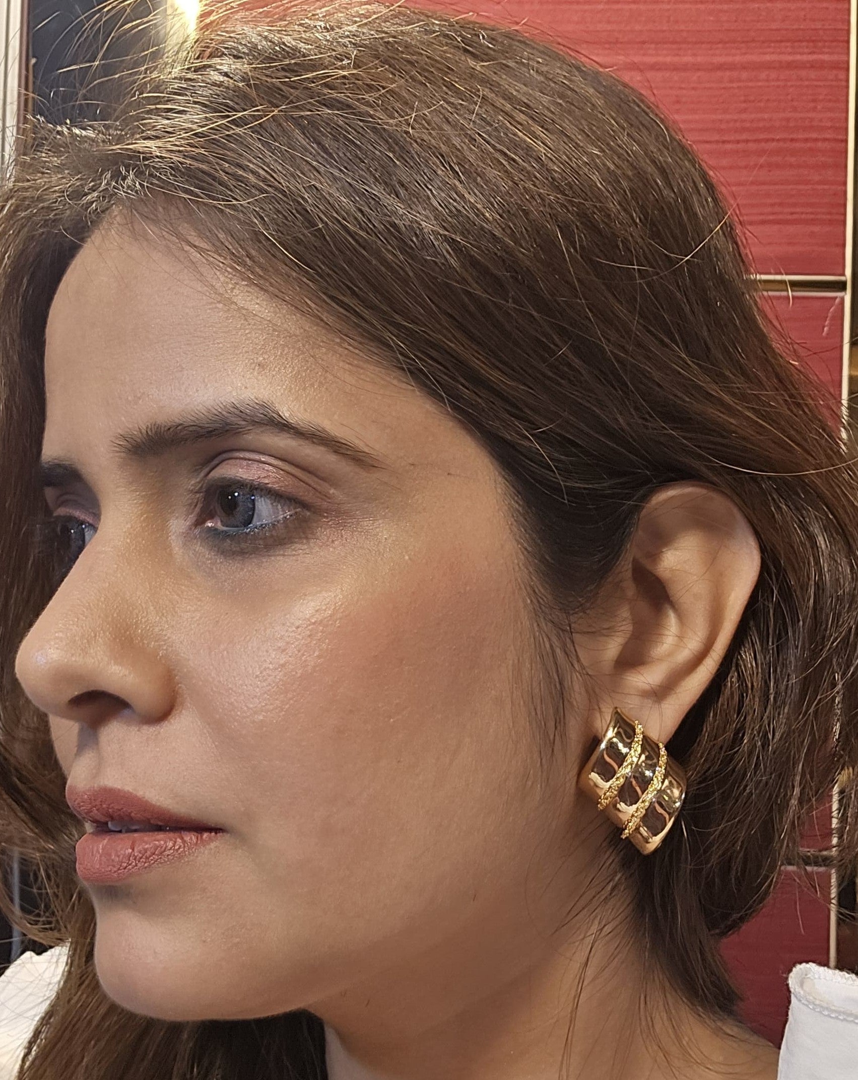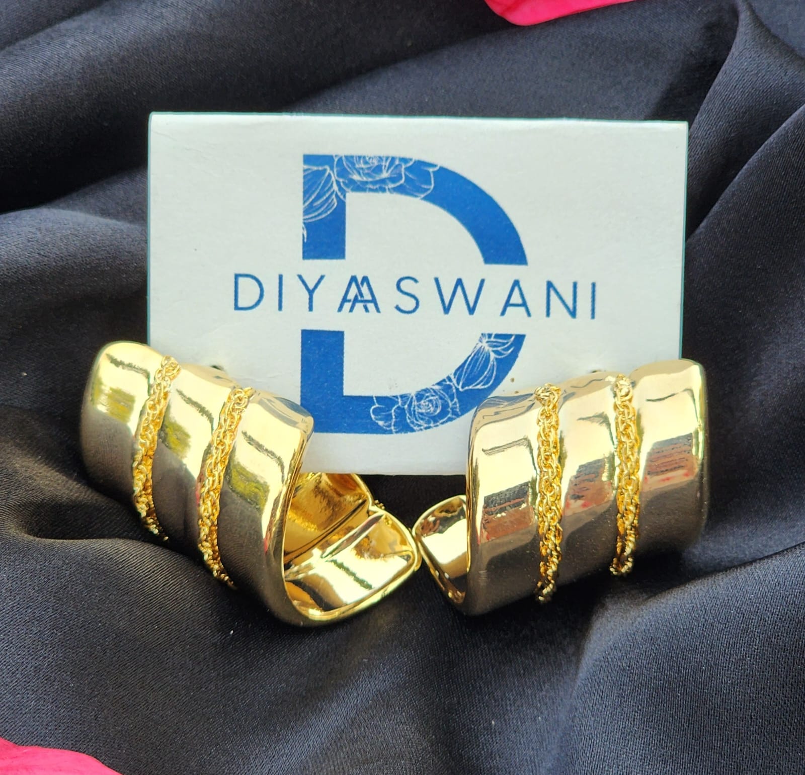 These golden hoops are a modern take on a classic style. The grooved design adds a touch of texture and dimension, making these earrings a statement piece. Perfect for everyday wear or a special occasion.