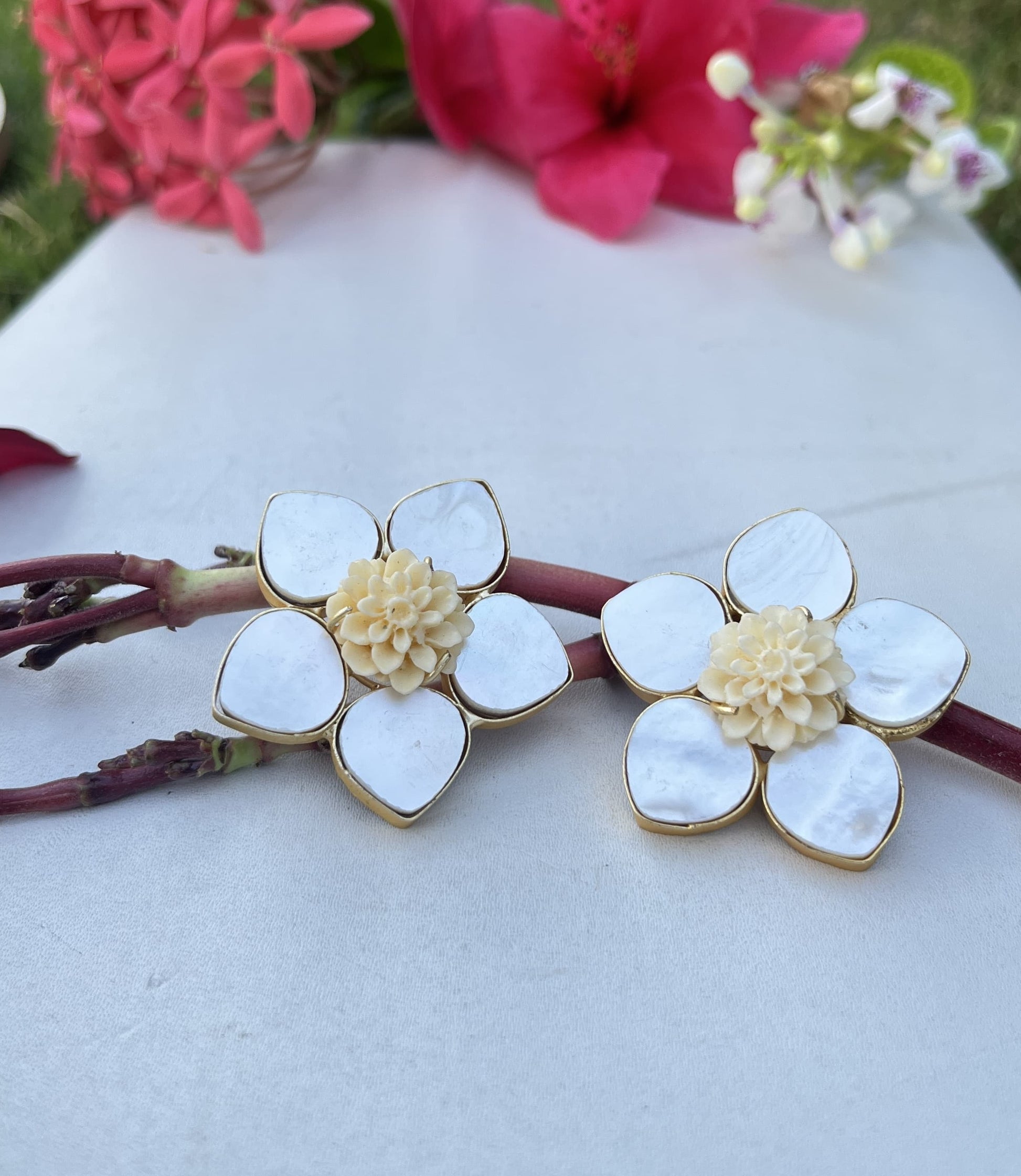 Elegant gold earrings featuring a fan design with three marquise-cut white CZ stones. These earrings add a touch of sophistication to any outfit.