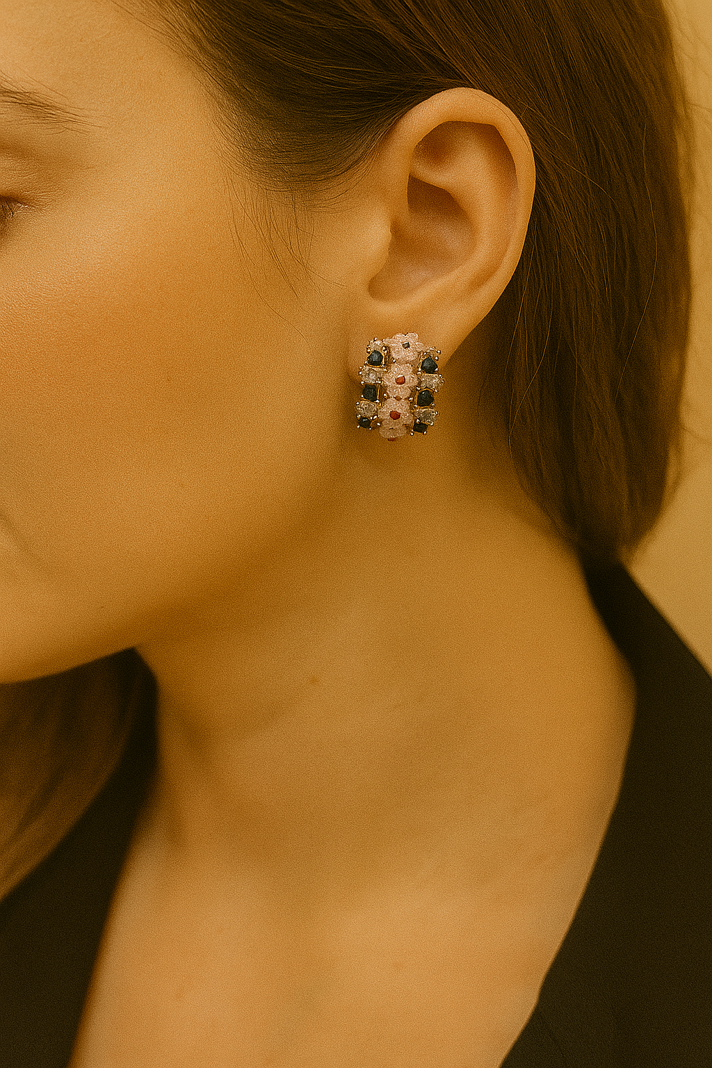 Grace meets glamour in these pearl-finish earrings accented with red and green stones. A perfect blend of elegance and vibrance for any special occasion..