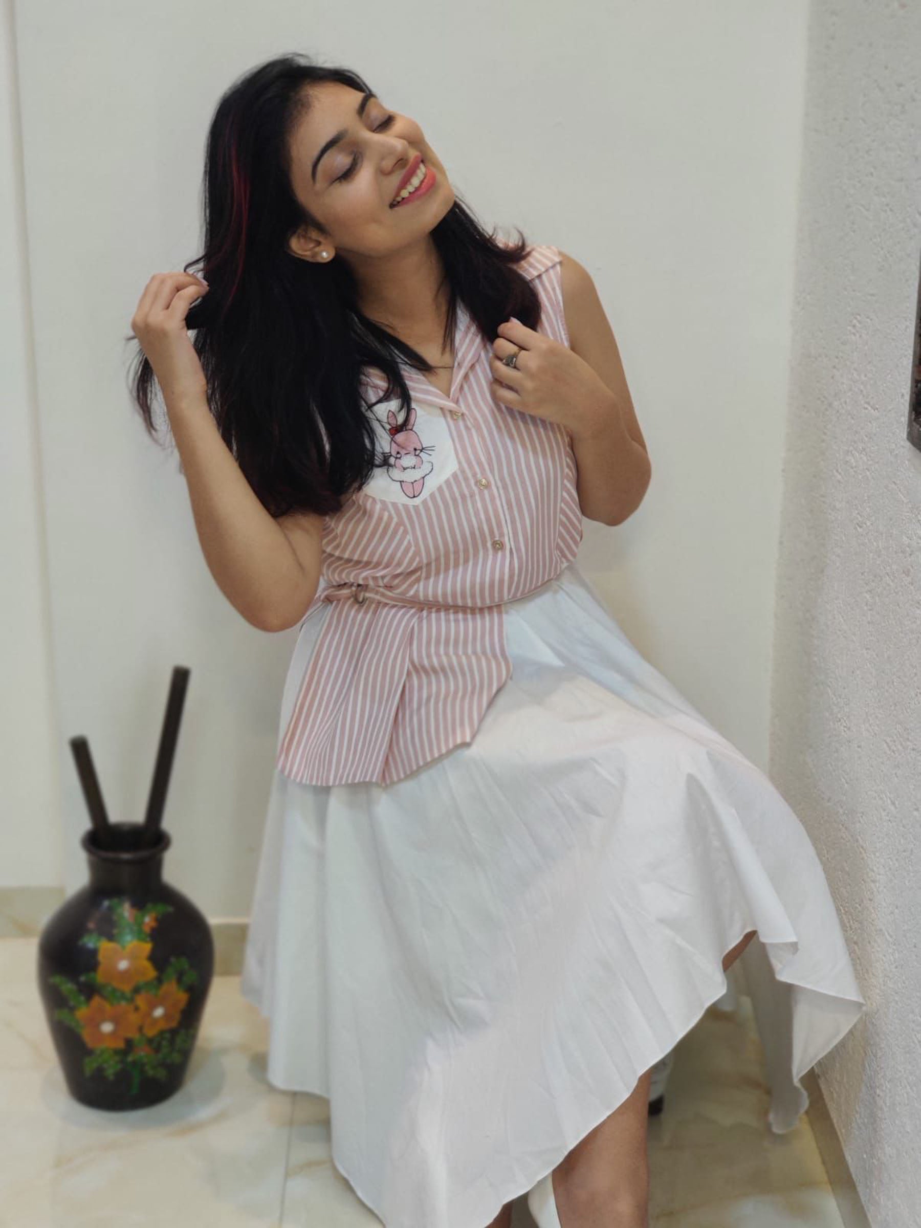 PINK STRIPE ON TOP & WHIITE ON BOTTOM WITH ANCHOR POCKET