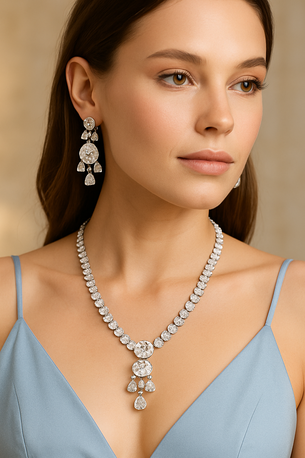Dazzle with this stunning crystal necklace set, crafted to perfection for timeless elegance. A perfect blend of sparkle and sophistication for every special occasion.