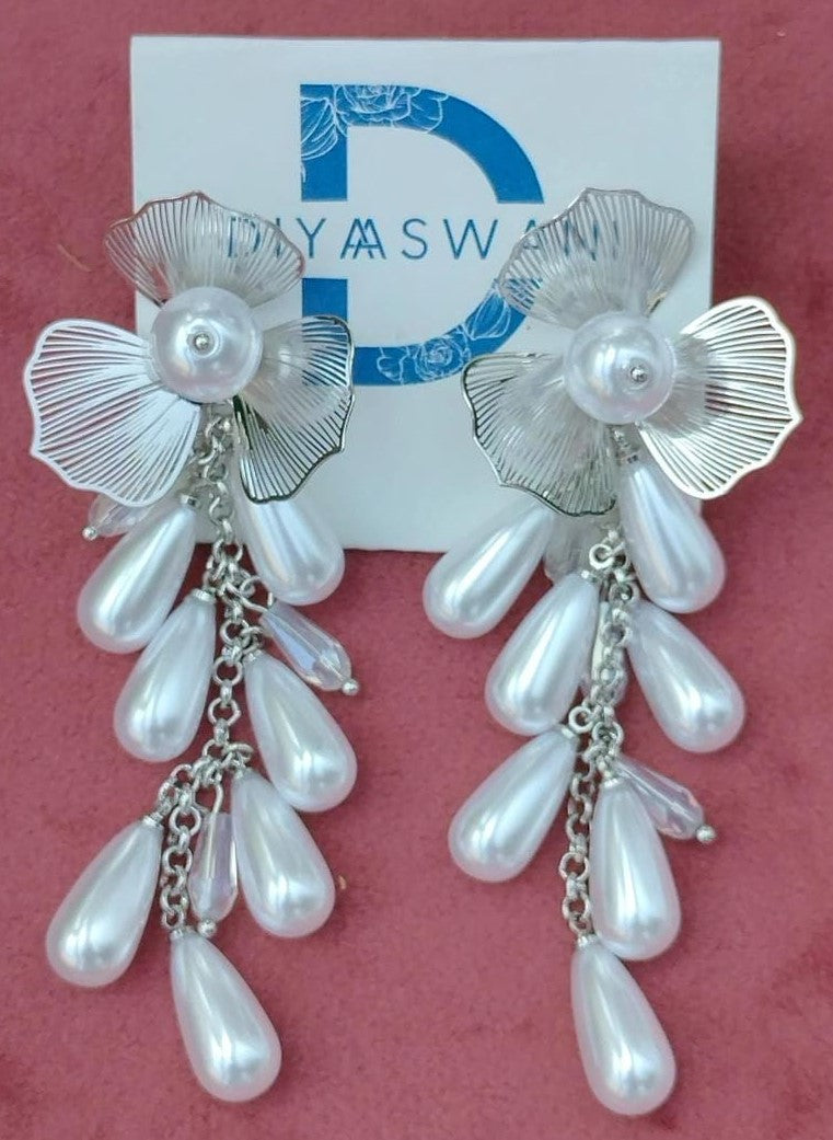 Silver Floral Drop Earrings
