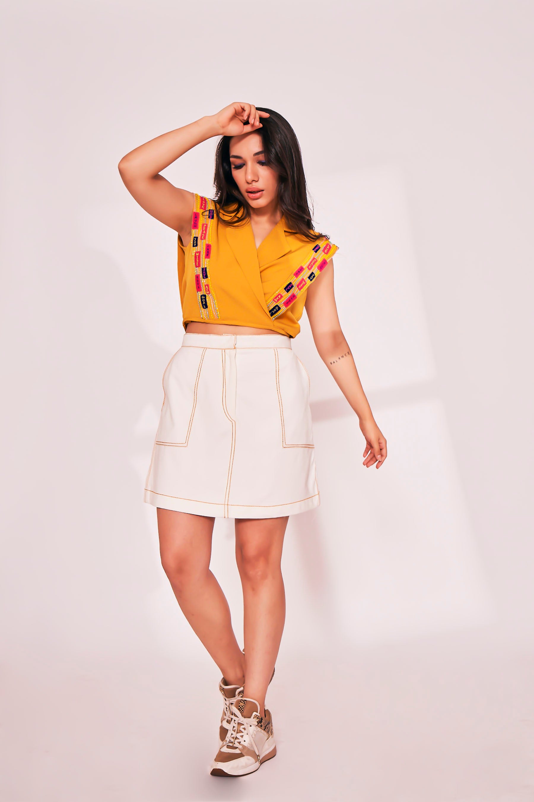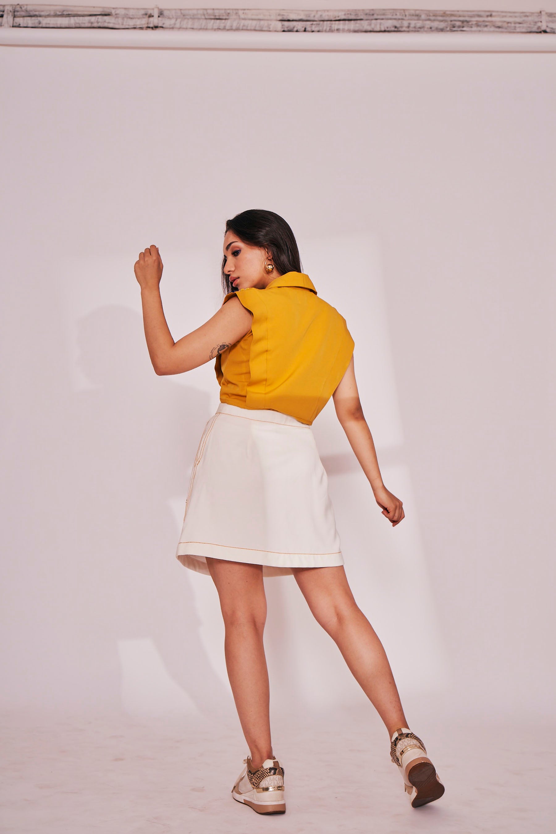 - Color: Top - Yellow Mustard, Pants - White
